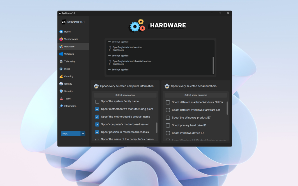 Ease of Use: EyeDown’s intuitive interface makes it easy for users to spoof various hardware details without needing extensive technical knowledge.